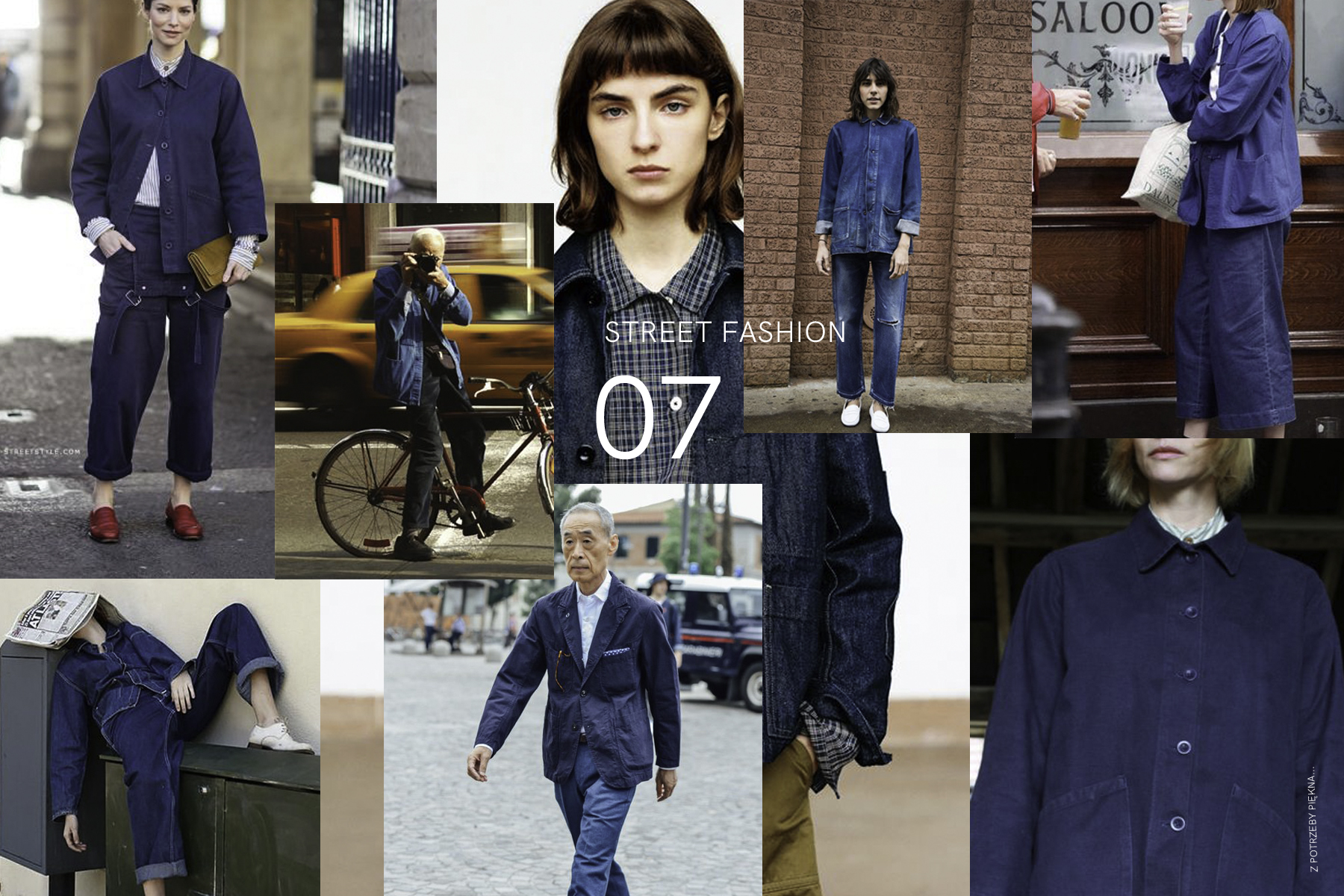Kurtka jeansowa o kroju prostej koszuli z kieszeniami kojarzy nam się przede wszystkim z Ameryką, kowbojami i mechanikami samochodowymi. Jednak jej początki wywodzą się z Francji, gdzie była nazywana BLEU DE TRAVAIL „roboczy blues” czyli po prostu „kurtka robocza” nazywana także CHORE JACKET. Ten element garderoby był bardzo powszechny wśród rzemieślników, rolników, robotników, mechaników samochodowych i pracowników kolei w XXI. Początkowo była stosowana w zestawie z roboczymi spodniami, kombinezonami czy bawełnianymi koszulami, uszyta z grubego płótna, zawsze barwiona na niebiesko, bo to czasy, kiedy jednolity kolor był symbolem przynależności społecznej a kolor niebieski był dedykowany grupie pracującej fizycznie (wspominałam o tym przy okazji wpisu o BIAŁEJ KOSZULI). Później wyodrębnia się jako rodzaj odzieży wierzchniej zarówno dla kobiet jak i mężczyzn. Kurtka „chore” ma prosty krój, jest zapinana na guziki i ma kilka naszytych sporych kieszeni. W pierwszej dekadzie XX wieku, we Francji pojawiają się specjalistyczne sklepy z odzieżą roboczą, w 1927 roku powstaje najsłynniejszy producent klasycznej odzieży roboczej VETRA, który po dziś dzień funkcjonuje w biznesie tekstylnym a produkowana przez nich „kurtka chore” należy do klasyki i przeszła do historii mody. Dziś „kurtka chore” na wszystkich kontynentach przeżywa swój wielki renesans. Swoją ponowną popularność zawdzięcza otwarciem się świata mody na styl charakterystyczny dla japońskiej ulicy, która bardzo mocno jest inspirowana wygodną i funkcjonalną odzieżą roboczą a także transformacją jaką ta odzież przeszła przez wszystkie lata. Amerykański fotograf Bill Cunningham, wybitna osobowość, ikona fotografii mody ulicznej po jednej ze swoich wypraw do Francji powraca z wygodną i praktyczną kurtką w kolorze niebieskim, która staje się jego znakiem rozpoznawczym a sam fotograf odegrał dużą rolę w popularyzacji „kurtki roboczej”. Starszy pan poruszający się na rowerze z niewielkim aparatem, ubrany w niebieską kurtkę z multifuncjonalnymi kieszeniami był stałym obrazkiem podczas Fashion Week w Nowym Jorku. Kurtka inspirowana odzieżą roboczą w sezonie wiosna – lato 2020 jest obecna w każdej kolekcji, raz jest uszyta z cienkiej bawełny innym razem z klasycznego jeansu w kolorze indygo. Na pokazach mody widać ją najczęściej w połączeniu ze spodniami z tego samego materiału i w tym samym kolorze, czyli jako uniform.
