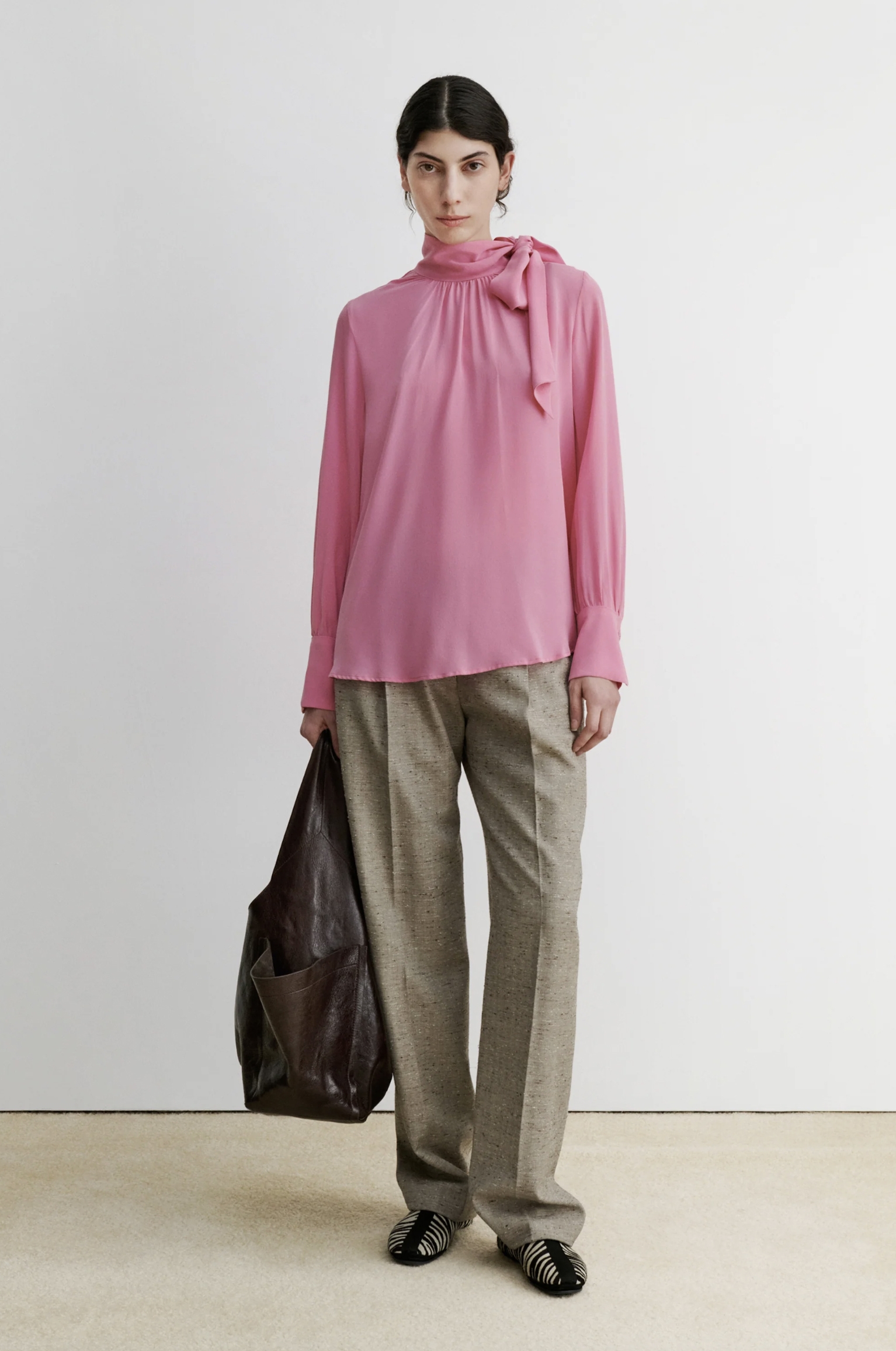 Jedwabna bluzka z kokardą.