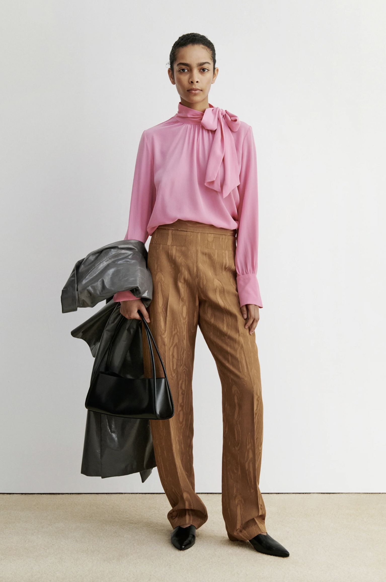 Prosze łączyć z aksamitnymi spodniami lub ze spódnicą caffe. Zarówno wszystkie odcienie brązu, granatu i zieleni będą wspaniale pasować do tego wyjątkowego różu.