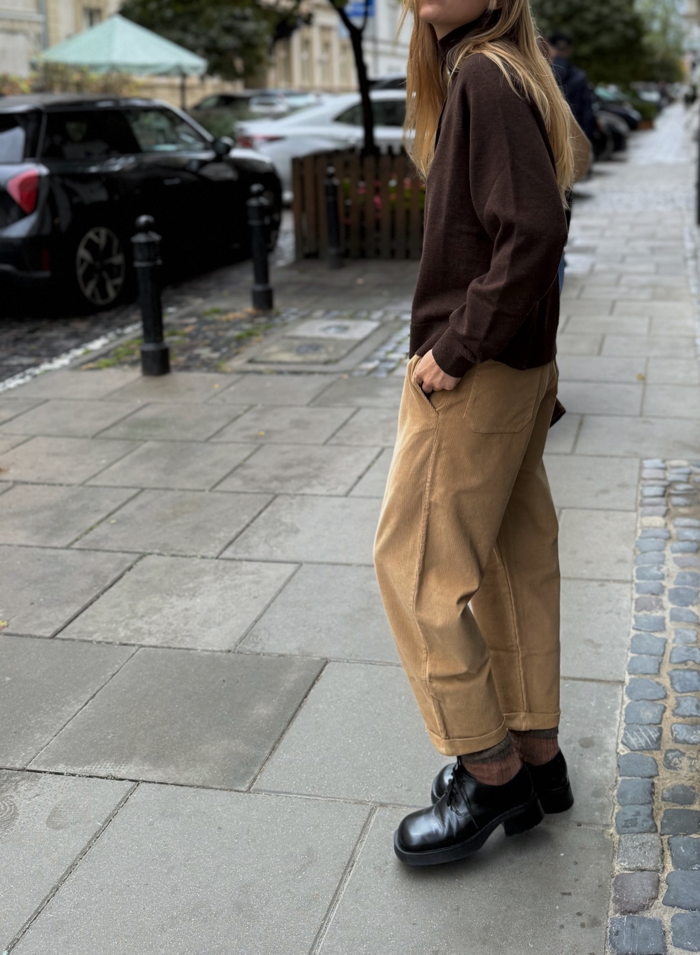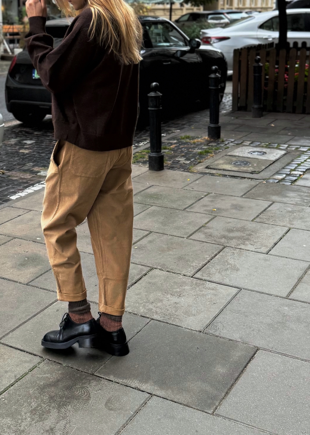 Miękkie sztruksy w klasycznym kolorze i kroju to akurat cos co w każdej szafie powinno być szczególnie w okresie jesiennym znacznie lepiej się sprawdzą niż jeansy. Nosimy ze swetrami, marynarkami i koszulami do których zakładamy oczywiście bezrękawniki, to też absolutny must have. Spodnie maja krój marchewki i można brac swój stały rozmiar lub rozmiar większy.