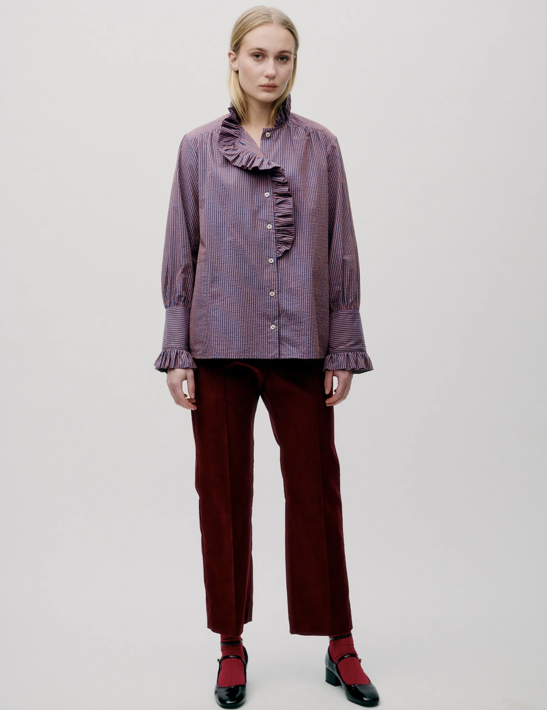 Koszula ze stójką i dekoracyjnymi rękawami.