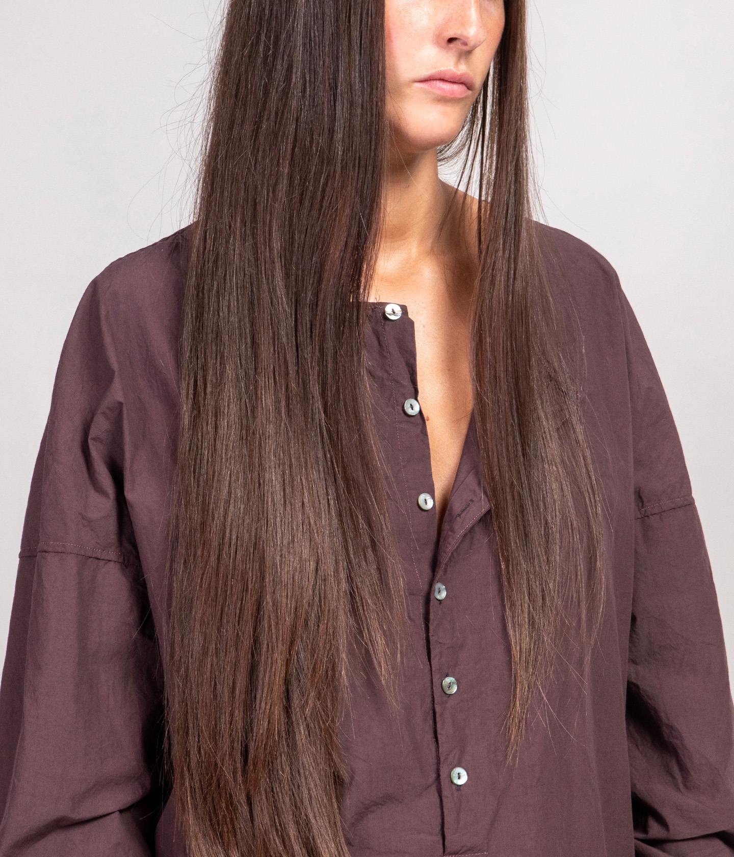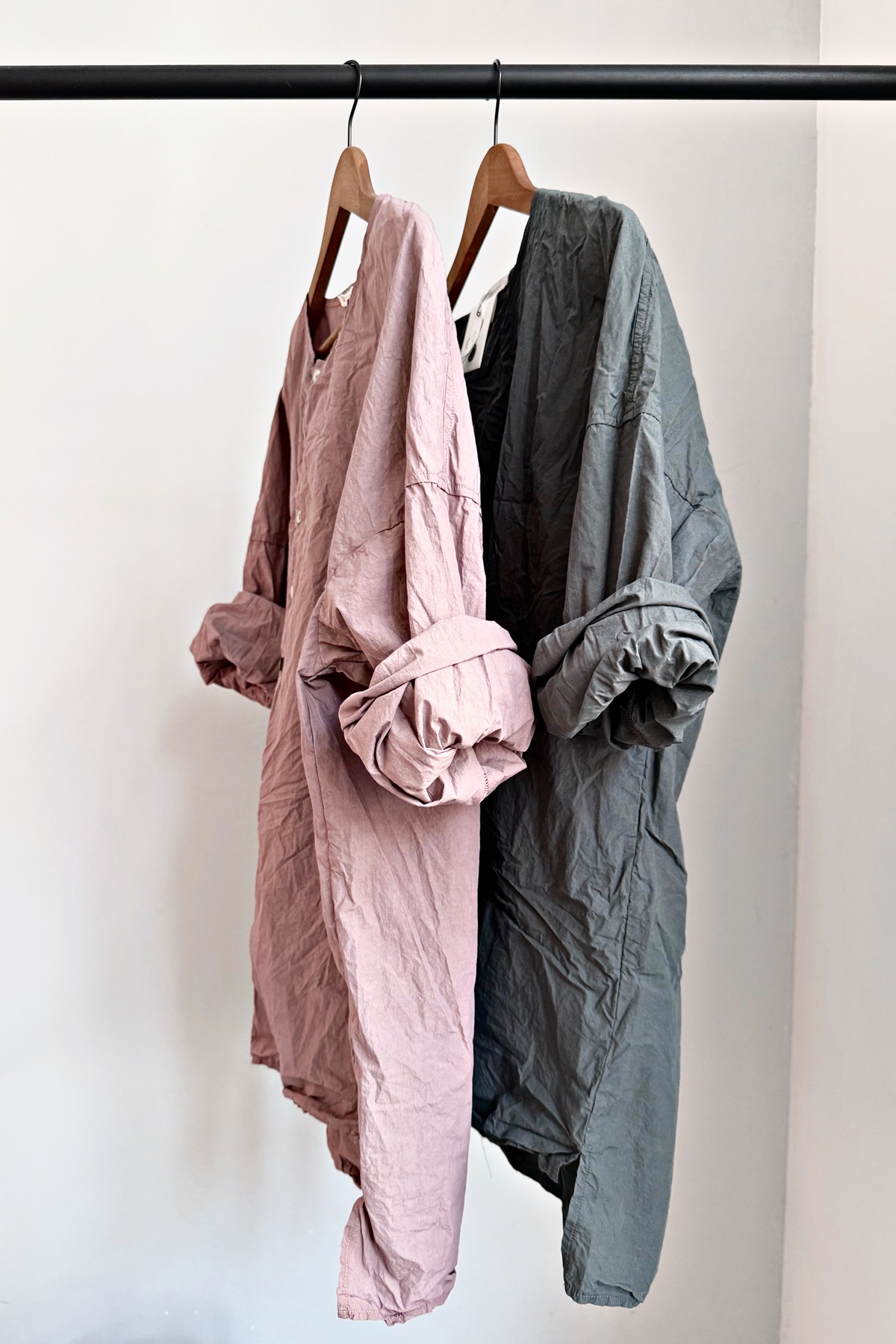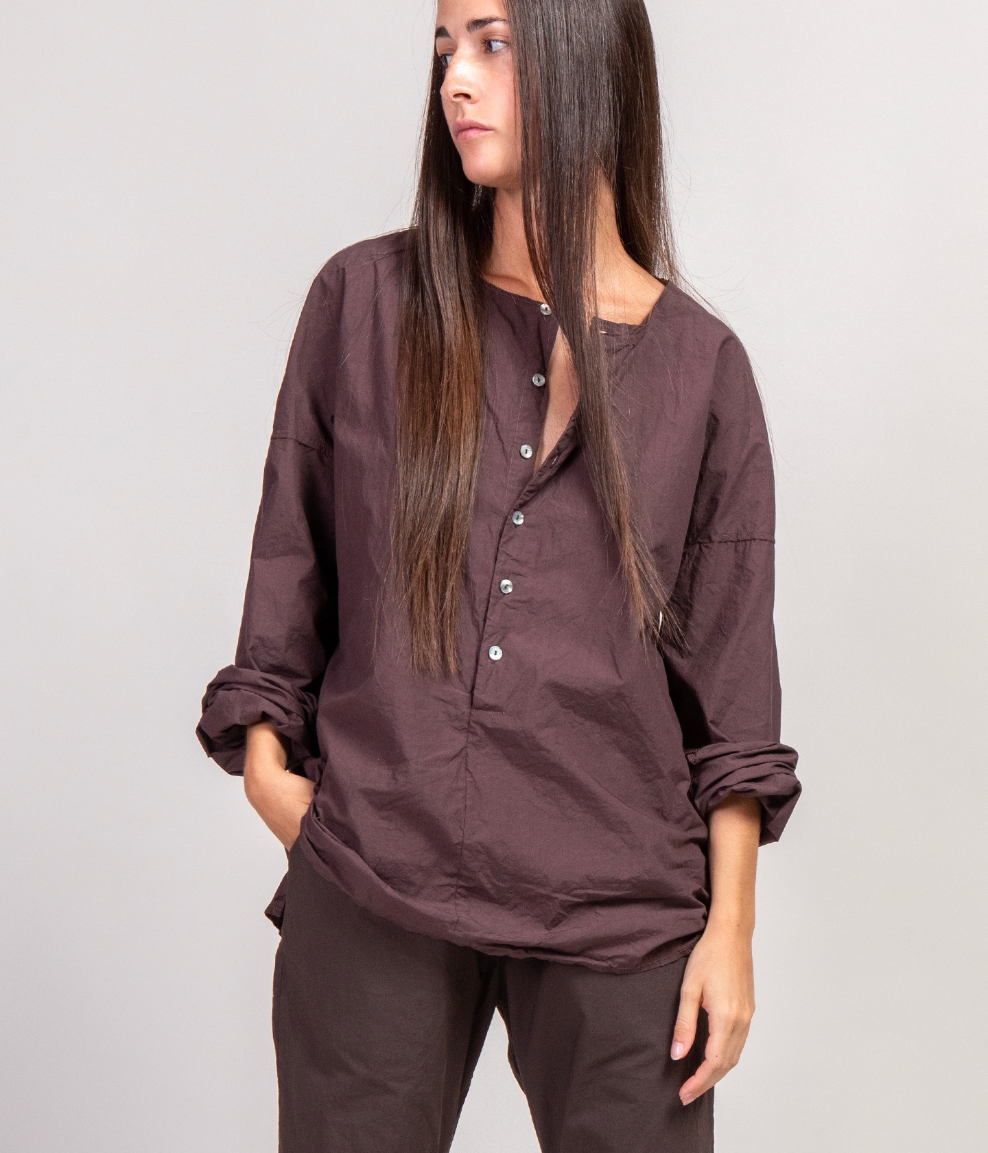 Koszula bez kołnierzyka zapinana do połowy na małe guziczki z papierowej bawełny jest dedykowana zarówno Paniom jak i Panom. Świetny sportowy charakter do noszenia do środka jak i na zewnątrz spodni.