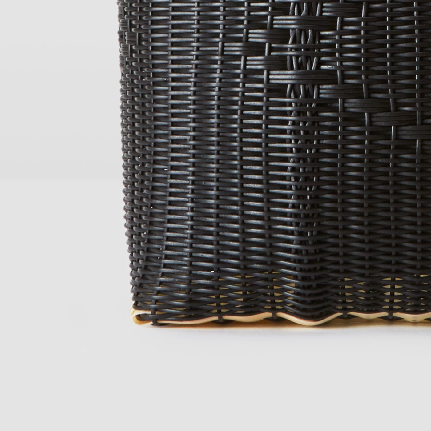 Koszyk średniej wielkości w kolorze czarnym zaprojektowany we Włoszech, wykonany zaś został w Gwatemalii. Ręcznie wykonany z przetworzonego plasiku.