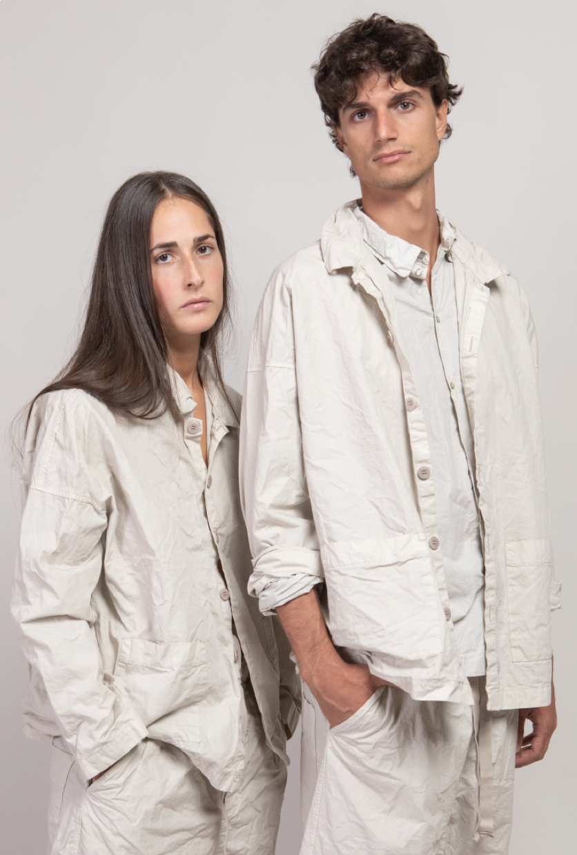 Szanowni Państwo marka stosuje tak zwane rzemieślnicze farbowanie, jest ono ekologiczne i bezpieczne zarówno dla środowiska jak i skóry. W całym procesie nie stosuje chemicznych utrwalaczy w związku z tym kolor będzie pracować przez cały czas noszenia i prania. Papierowy charakter tkaniny jest w odczuciu wspaniały i od lat jest to najlepiej sprzedająca sie tkanina marki w szególności w Japonii, gdzie ceniony jest unikatowy proces tworzenia tych wyjątkowych, minimalistycznych ubrań.