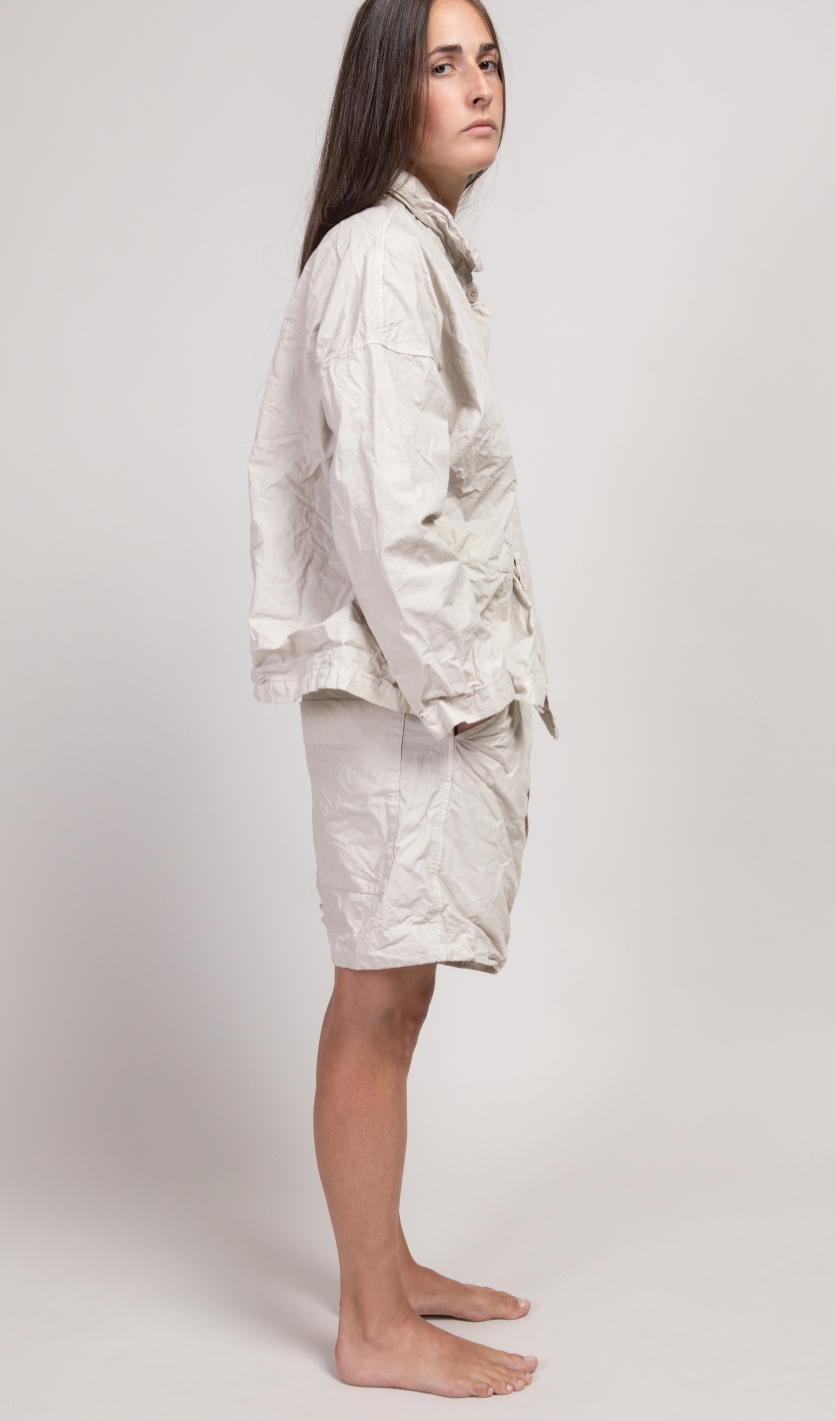 Kurtka z dwoma kieszeniami o charakterze koszuli do noszenia jako kolejna warstwa lub samodzielnie. Koszula uszta z papierowej bawełny o grubszym splocie. Dedykowana dla Pań i dla Panów.