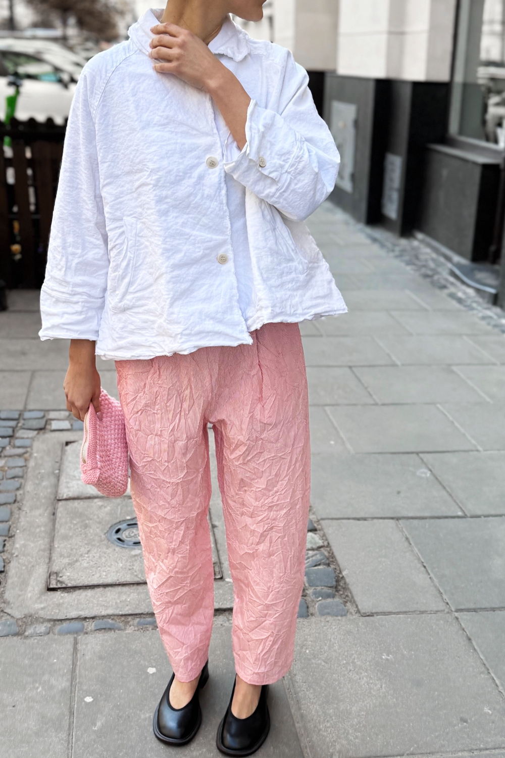Tkanina: 59% BAWEŁNA, 29% LEN, 9% MTF, 4% ELASTYN