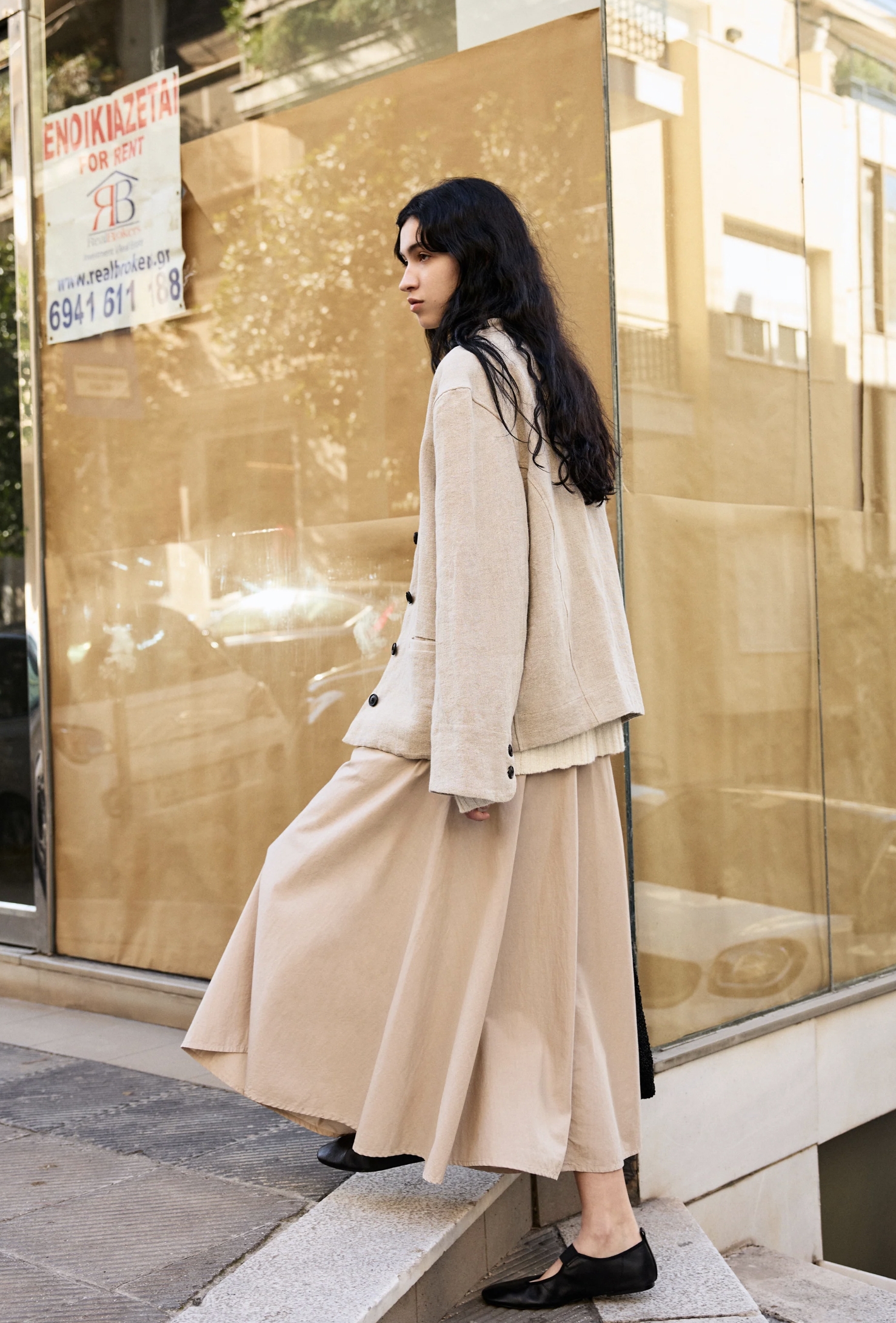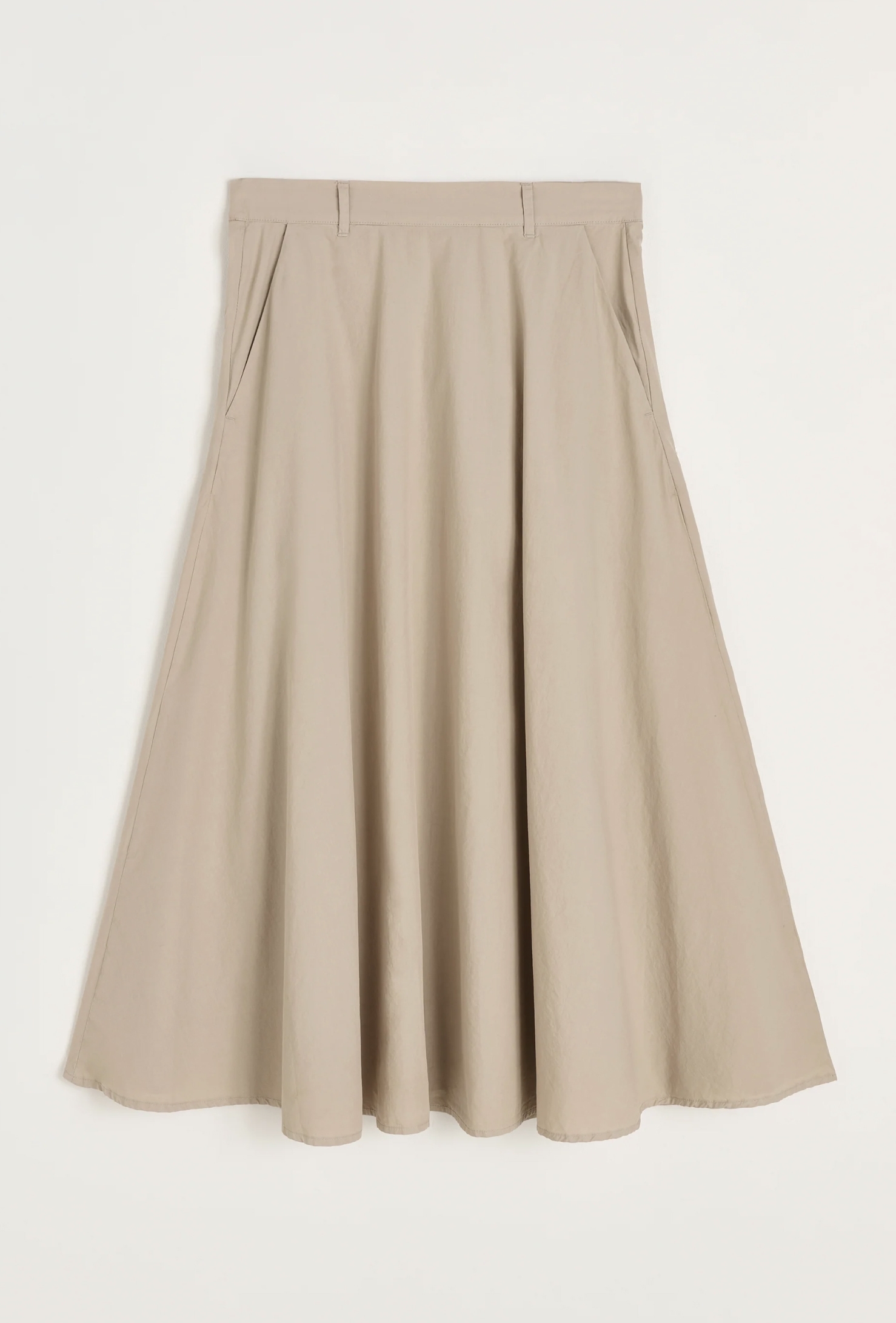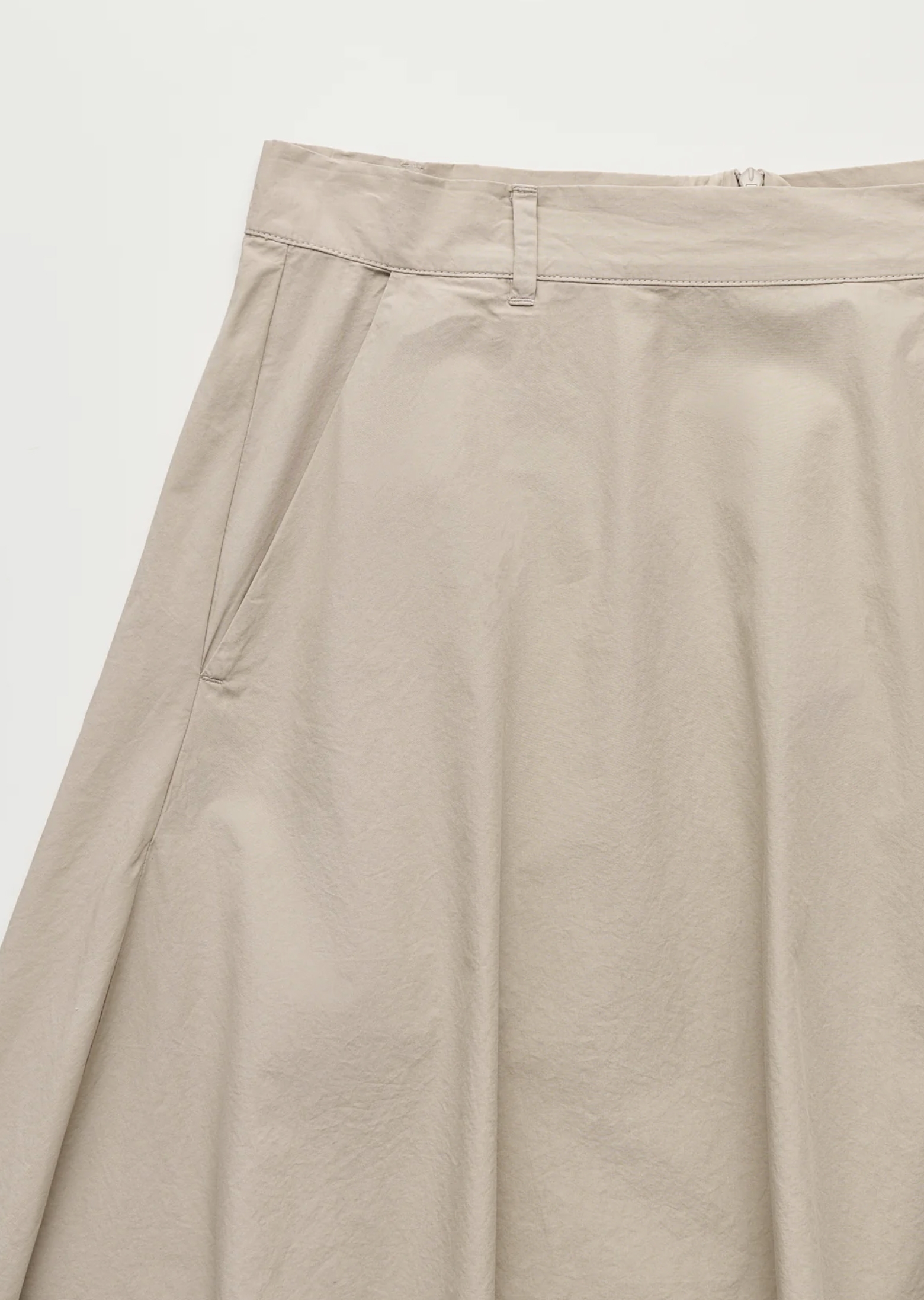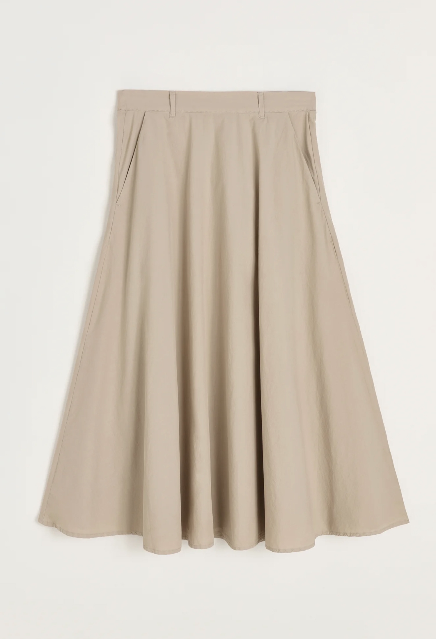 Rewelacyjna, lekka i sportowa spódnica midi wykonana z bawełny organicznej. Talia dopasowana z dyskretnym zapięciem na zamek i delikatnym krojem w kształcie litery A. Precyzyjne ukośne szwy tworzą elegancki krój jednocześnie nadając jej zamaszystości.
