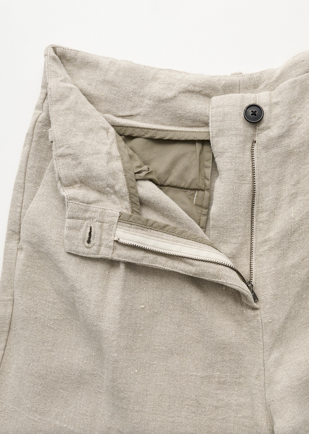 Spodnie z mięsistego lnu w kolorze naturalnym.